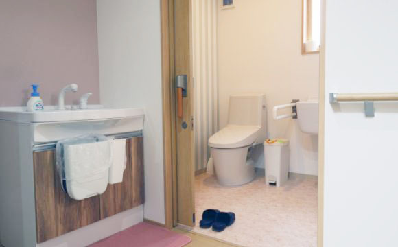トイレは2箇所設置しており、混雑を防ぎます。手すり付きで安心して使える空間。独立した手洗い場で清潔にも配慮しています。